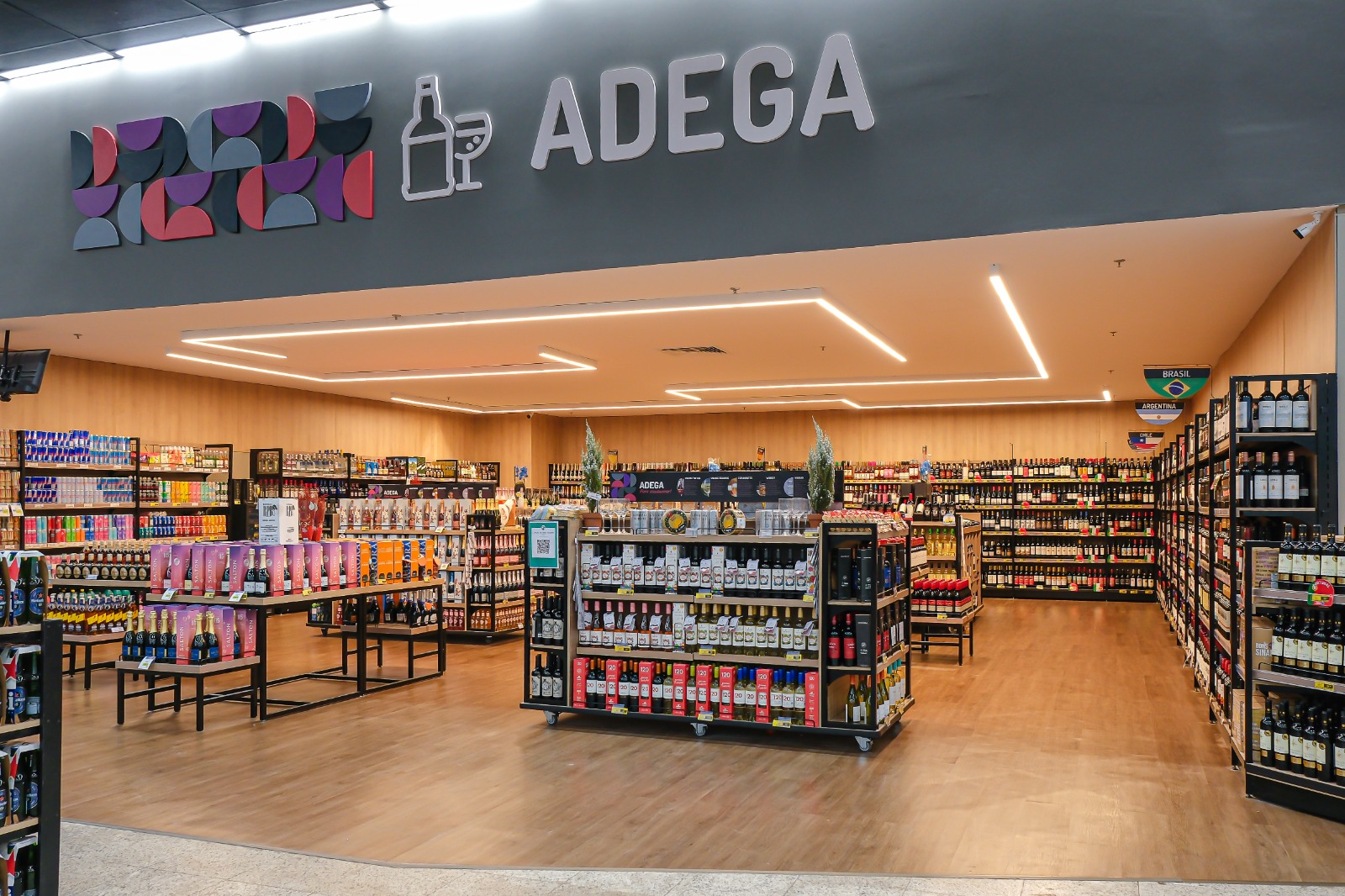 Um dos destaques da nova loja é a adega, que passou por uma reformulação completa. O espaço foi transformado em uma área mais ampla, moderna e imponente, pensada para estimular a experiência de compra e a descoberta de novos rótulos.